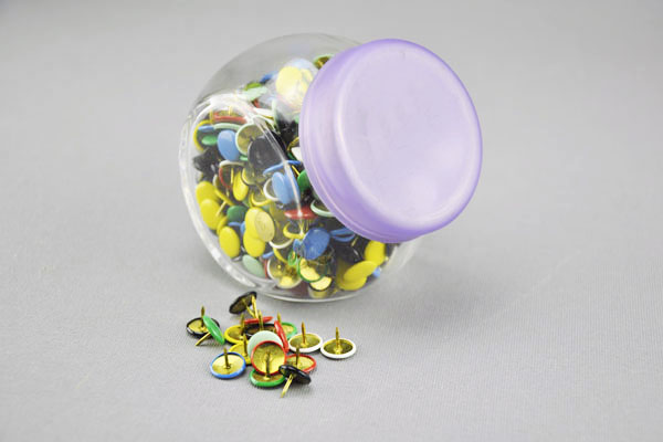 Glasbehälter mit 500 Reissnägel, violetter Deckel