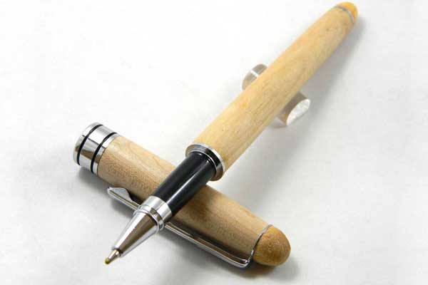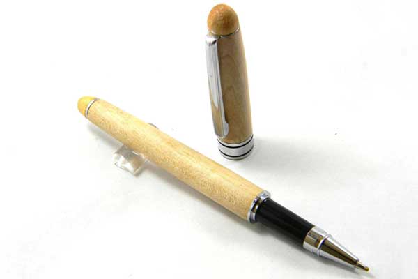 Holz-Kugelschreiber mit Rollerball-Mine schwarz, 144mm, 35g, Echtholz braun